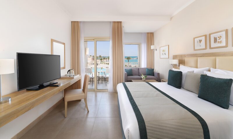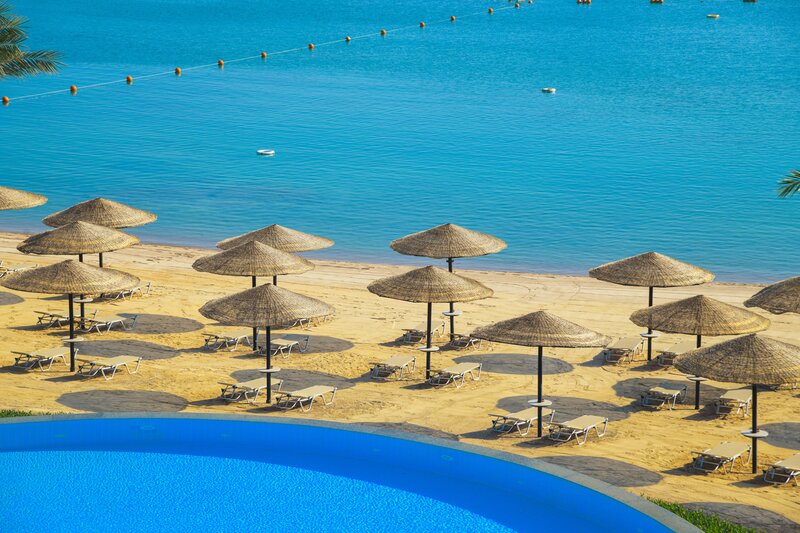 Das neue, luxuriöse Hotel befindet sich in bester Lage an der Strandpromenade von Hurghada. Gäste haben privaten Zugang zu einem wunderschönen Sandstrand, den Flughafen erreicht man in ca. 5 km.