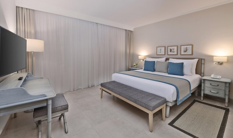 Das neue Hotel bietet Gästen 236 Zimmer und Suiten, die alle mit Balkonen oder Terrassen ausgestattet sind, die auf das Meer, den Garten oder die Pools blicken lassen. In 3 À-la-carte-Restaurants (Italienisch, Mediterran und Grillspezialitäten) sowie einem Buffettrestaurant und verschiedenen Bars und Cafés/Bistros ist für das leibliche Wohl gesorgt.