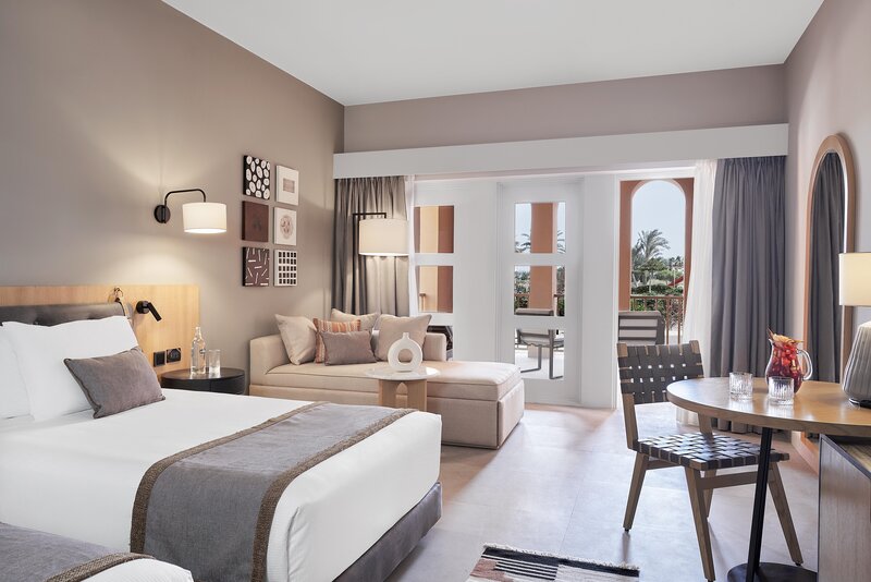 - Junior suita z dvoposteljno sobo in pogledom na bazen, vrt, igrišče za golf ali morje; na voljo tudi kot enoposteljna (JSA) ali troposteljna soba (TJP)