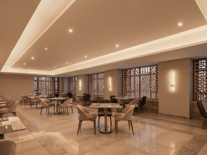 Izbor ob zajtrku: bogat samopostrežni zajtrk v restavracijah Sharm in Reef (sezonsko pogojeno). Pozni zajtrk v restavraciji Sharm.