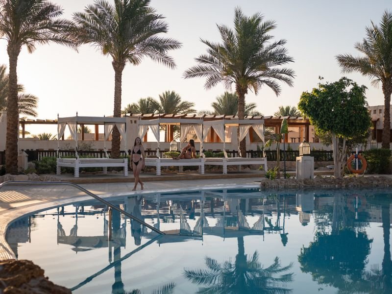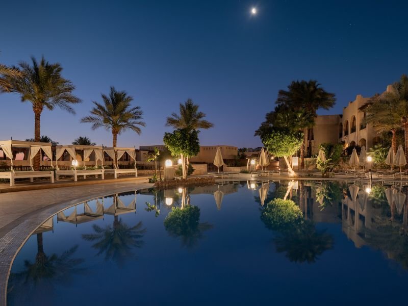 LEGA: Preprost kompleks se nahaja na rahli vzpetini v počitniškem predelu Ras Um Sid. Z lepe in urejene zasebne plaže se odpira čudovit pogled na morje. Zaradi koralnega grebena, ki sega vse do plaže, je dostop do morja omogočen po pomolu in je primeren samo za spretne plavalce (priporočamo čevlje za v vodo). Hotel zaradi stopnic in teras ni primeren za osebe na invalidskem vozičku ali otroške vozičke. Čas transferja od letališča približno 30 minut.